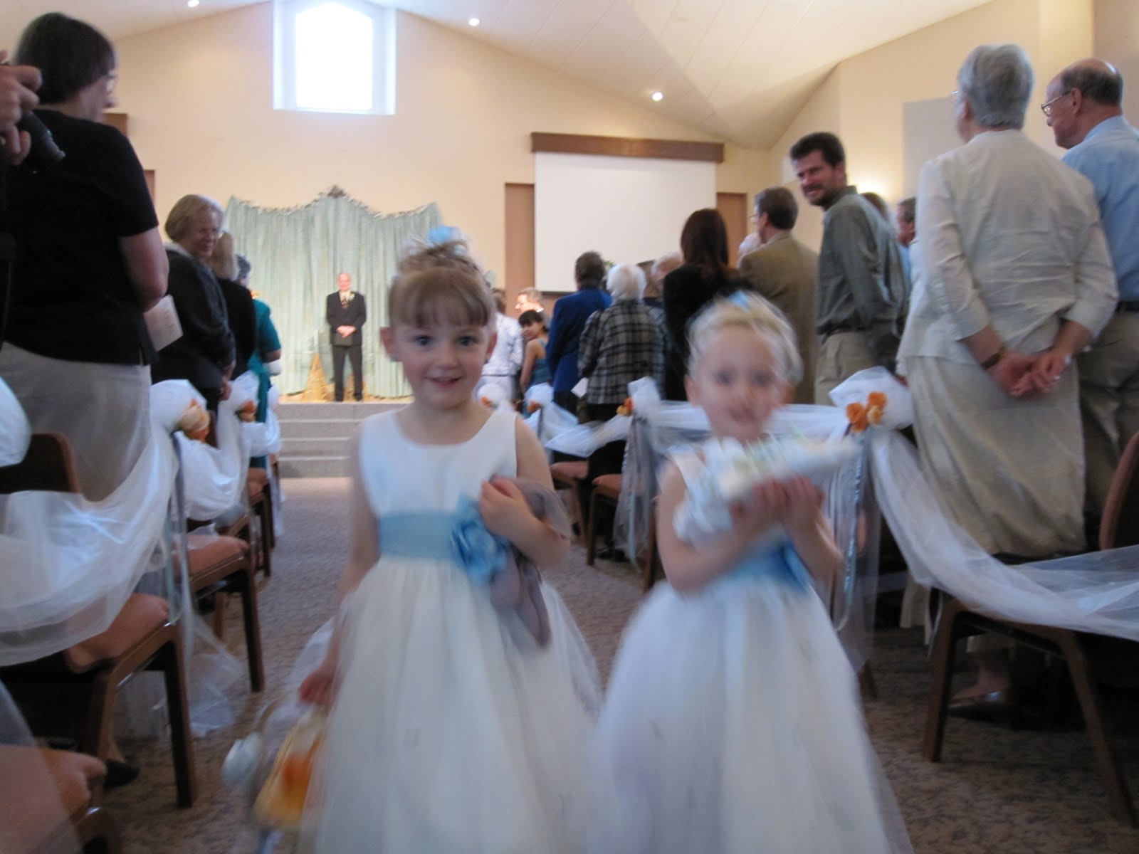 Last Saturday, Adrianna had the joy of being a flower girl in our friend Emily's wedding. She and Abby (the other flower girl/ring bearer) have gone to church together since birth, but because they are one year different in age, they have not gotten to know each other in Sunday school. By the end of the weekend, they were great friends!